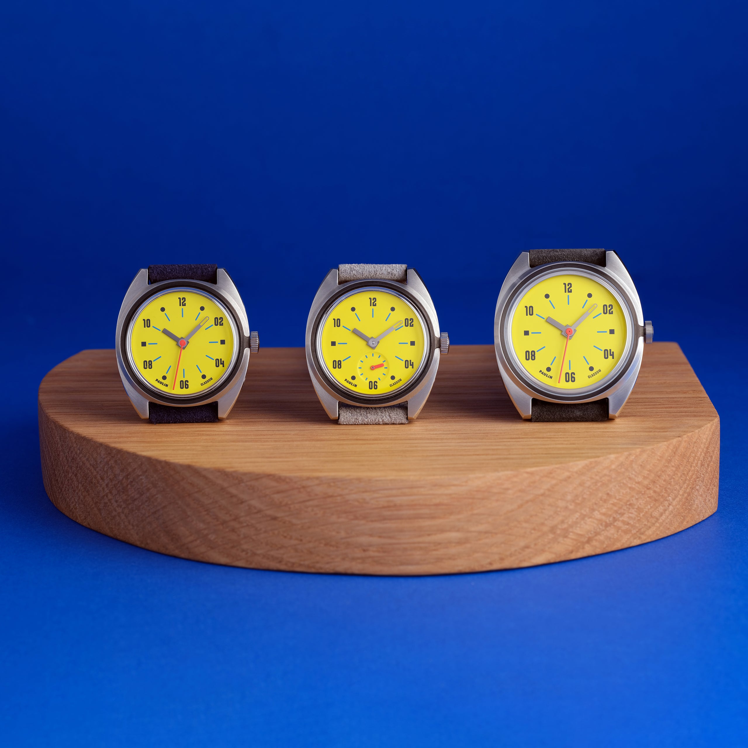 The newest addition to our collection, this upscaled Modul Automatic features the familiar bold colour palette and tonneau-shaped case of our original Quartz and Manual models, with a 39mm case diameter.
