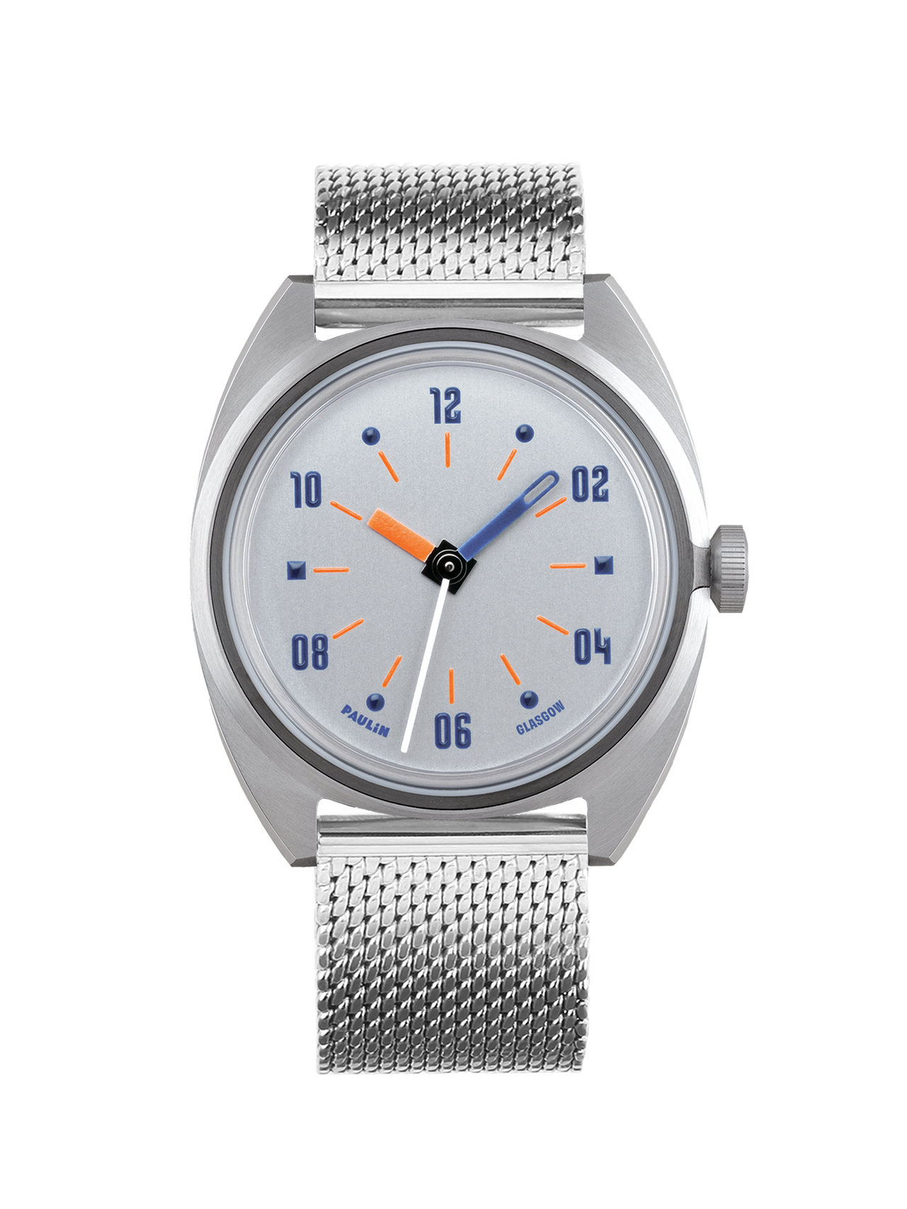 The case is named after its modular construction, which was designed to accommodate a range of movement calibres. The black steel body that holds the movement is distinct from the brushed steel outer case and attached with two screws on either side. Powering the watch is the reputable La Joux-Perret Automatic G101, with blued screws and Geneva stripes visible through the exhibition caseback.