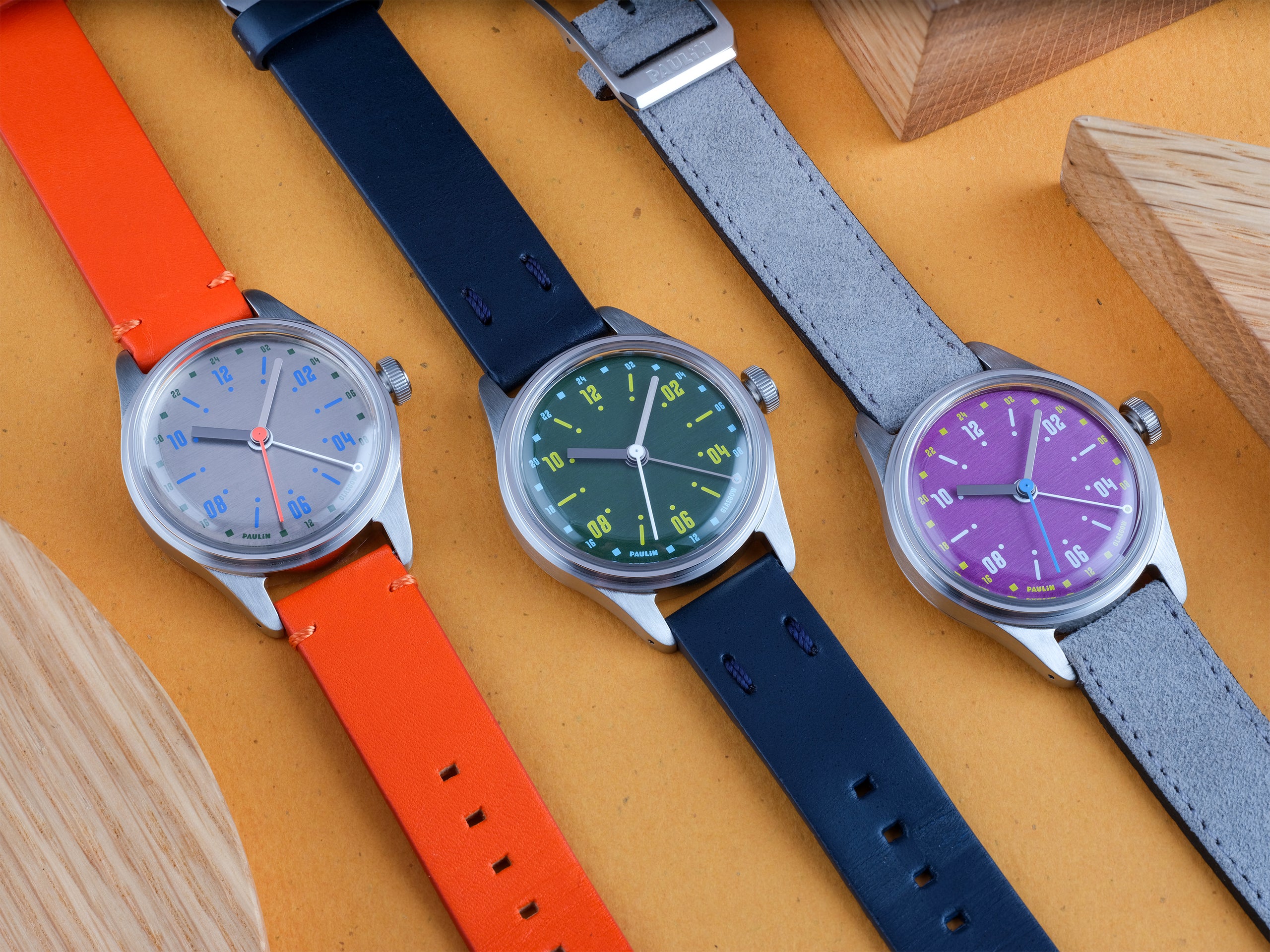 With its vivid colour palette, bespoke typography and raised box-section crystal, the Neo GMT has an evocative vintage aesthetic. The dial is manufactured in the UK using aluminium, which is anodised and dyed, imbuing the metal with an incredible depth of colour and a distinctive, almost holographic finish. Anodised aluminium is a rarity in watchmaking due to the difficulty in producing a uniform finish. The automatic watch is powered by the robust Seiko NH34A, modified to remove the ghost-date position. The movement is viewable through the optional display caseback. At a comfortable 38mm case size, the Neo suits most wrist sizes.