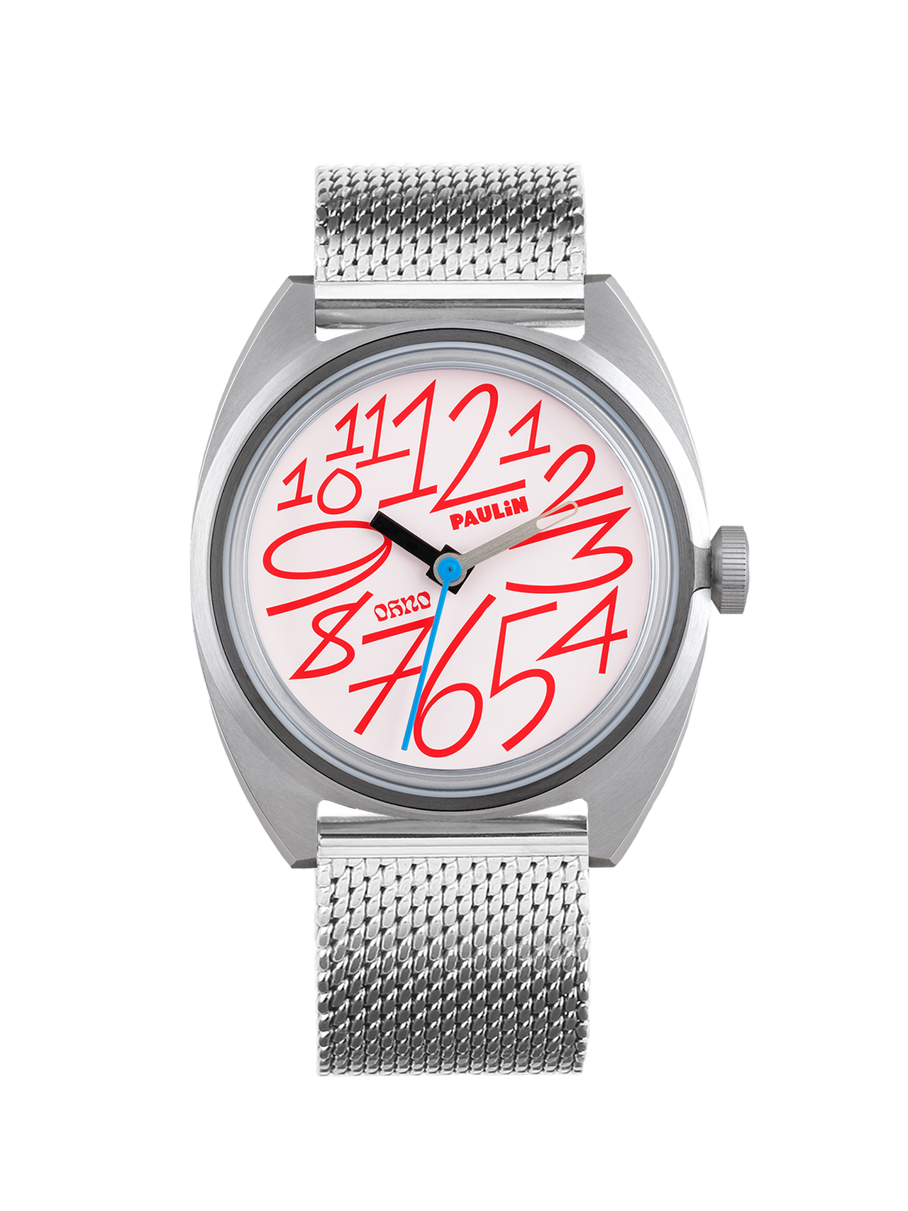 The OH no Modul is a collaboration between Paulin and the San Jose type foundry OH no. This partnership was born out of our mutual love of typography and our particular fondness for the font Obviously, used across Paulin’s identity. The watch was launched in California as part of San Francisco’s Wind Up Watch Fair.