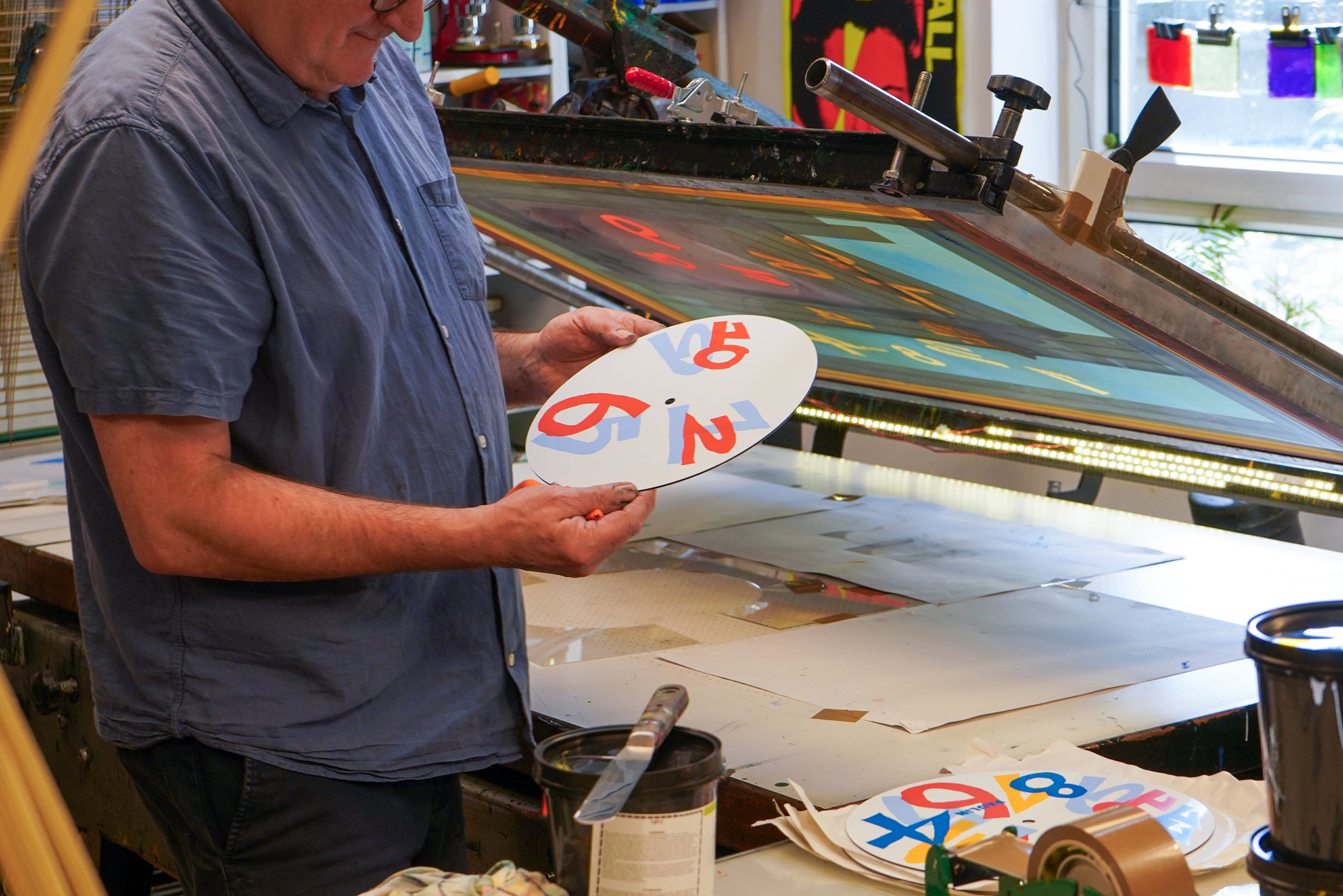 To celebrate the overlaid nature of the design, we chose to use four layers of screen printing with differing levels of opacity. The dials were printed in Glasgow by Matthew Rich of M.A.R.S Studio and are part of a limited run of dials.
